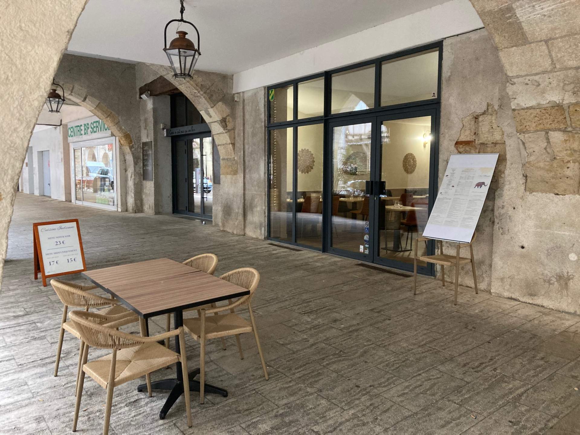 Installez-vous sur notre terrasse magnifiquement arborée, au cœur de l’architecture en pierre typique de Périgueux, pour une expérience culinaire unique.